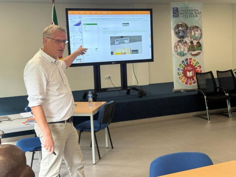 Ik geef een presentatie op het ministerie van Onderwijs, Wetenschap en Cultuur. Foto: Louis Hilgers