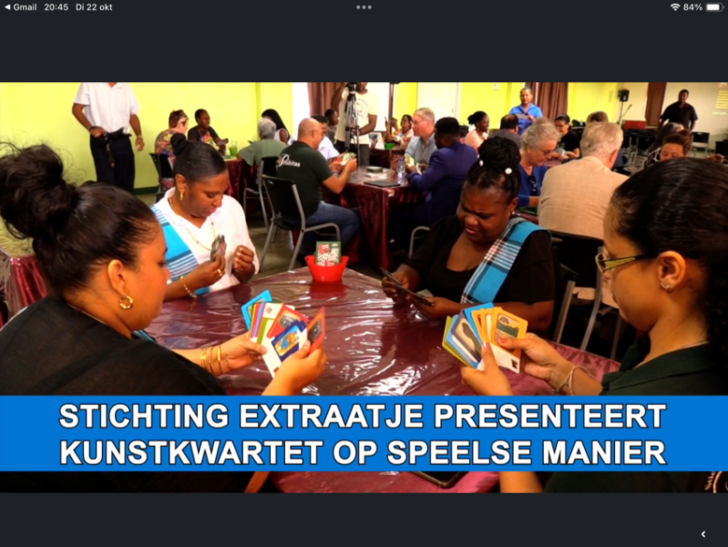 In oktober 2024 heeft de stichting Extraatje een kunstkwartet uitgerold. Alle 500 scholen in Suriname hebben vier exemplaren ontvangen en ook een kunstenaarsboekje en een docentenhandleiding. Voor alle informatie: [ klik hier ]. Het kwartet kun je ook online spelen via de app [ Kwartool ].