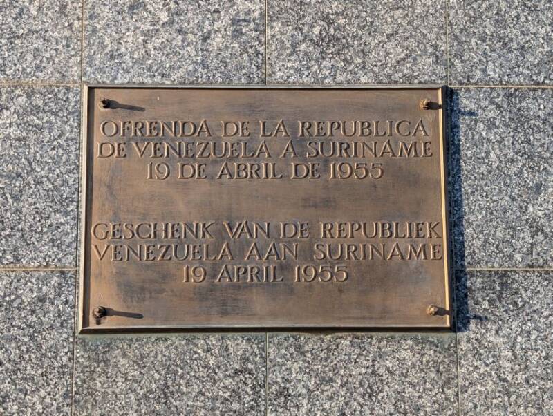 De buste van Simón Bolívar staat op het Kerkplein aan de zuidwestzijde van de hervormde Centrumkerk in Paramaribo. De buste is een geschenk van Venezuela aan Suriname en werd onthuld in 19551. De plaquette op de zuil waarop de buste is geplaatst, vermeldt de tekst: "Simon Bolivar libertador de Venezuela Columbia, Ecuador, Panama y Peru Fundador de Bolivia Nacio en Caracas el 24 de julio de 1783 Murio en Santa Marta el 17 de diciembre de 1830" (Simon Bolivar bevrijder van Venezuela, Colombia, Ecuador, Panama en Peru en stichter van Bolivia, geboren te Caracas op 24 juli 1783, overleden te Santa Marta op 17 december 1830). Simón Bolívar, ook bekend als "El Libertador," speelde een cruciale rol in de bevrijding van verschillende Zuid-Amerikaanse landen van de Spaanse koloniale heerschappij en stond aan de basis van de oprichting van Bolivia.